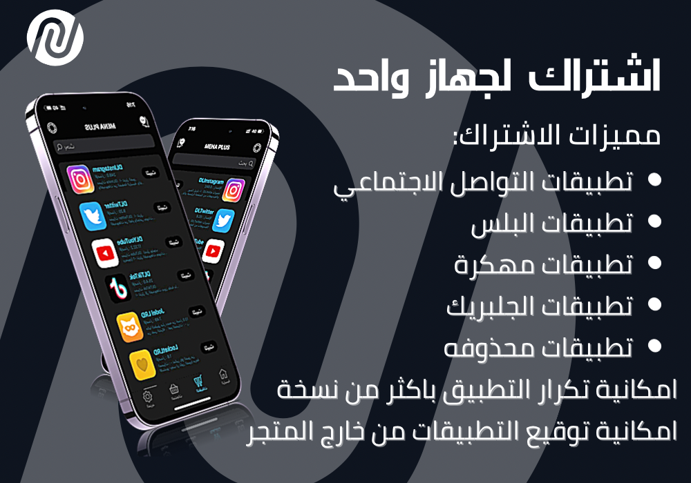- الاشتراك عبارة عن تطبيق واحد " متجر " فيه أكثر من 800 تطبيق بلس معدل داخله .